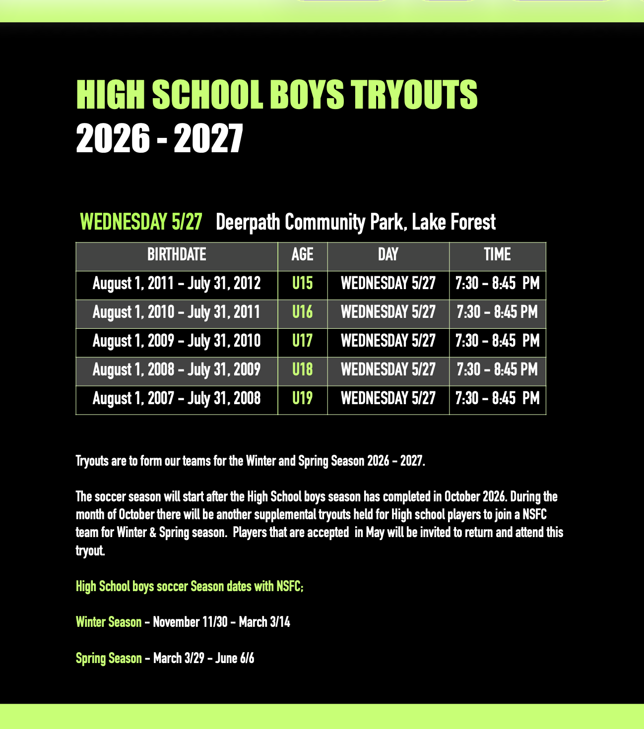 5. Register for 'North Shore FC Tryouts 2026' and upload required documents.